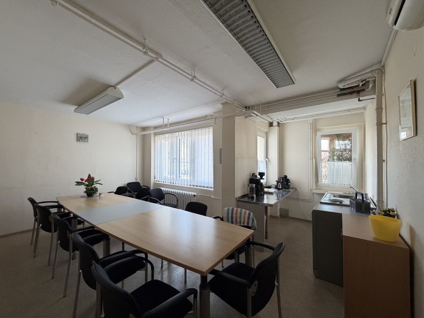 Die Immobilie selbst besteht aus zwei Geschossen und bietet insgesamt neun Zimmer, die je nach Bedarf flexibel genutzt werden können. Die Fußböden sind mit verschiedenen Materialien ausgestattet, darunter Teppich, Fliesen und Beton, was eine Vielzahl von Nutzungsmöglichkeiten bietet. Das vorhandene Inventar kann bei Bedarf teilweise übernommen werden. Die Immobilie verfügt über ein Flachdach, was eine einfache Wartung und Instandhaltung ermöglicht. Da die Immobilie nicht unterkellert ist, können die Nutzer die gesamte Fläche für ihre geschäftlichen Aktivitäten nutzen. Insgesamt bietet diese Spezialimmobilie eine ideale Lösung für Unternehmen, die nach einer großzügigen und flexiblen Fläche suchen.