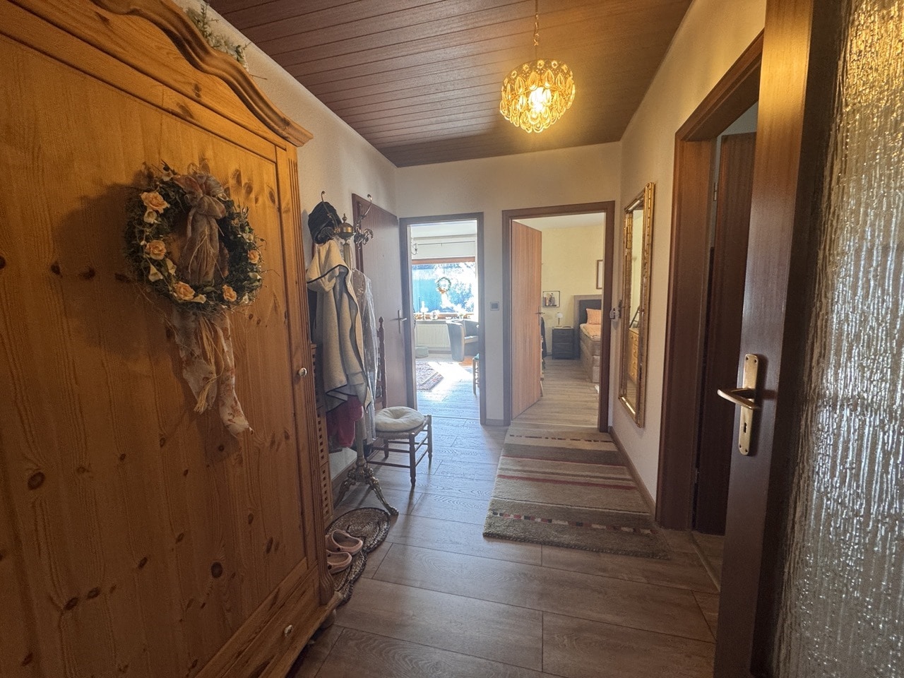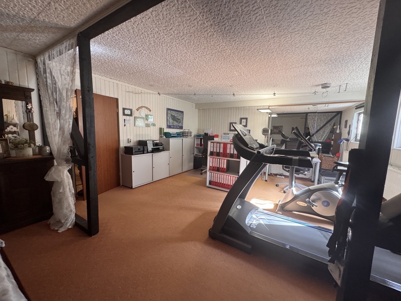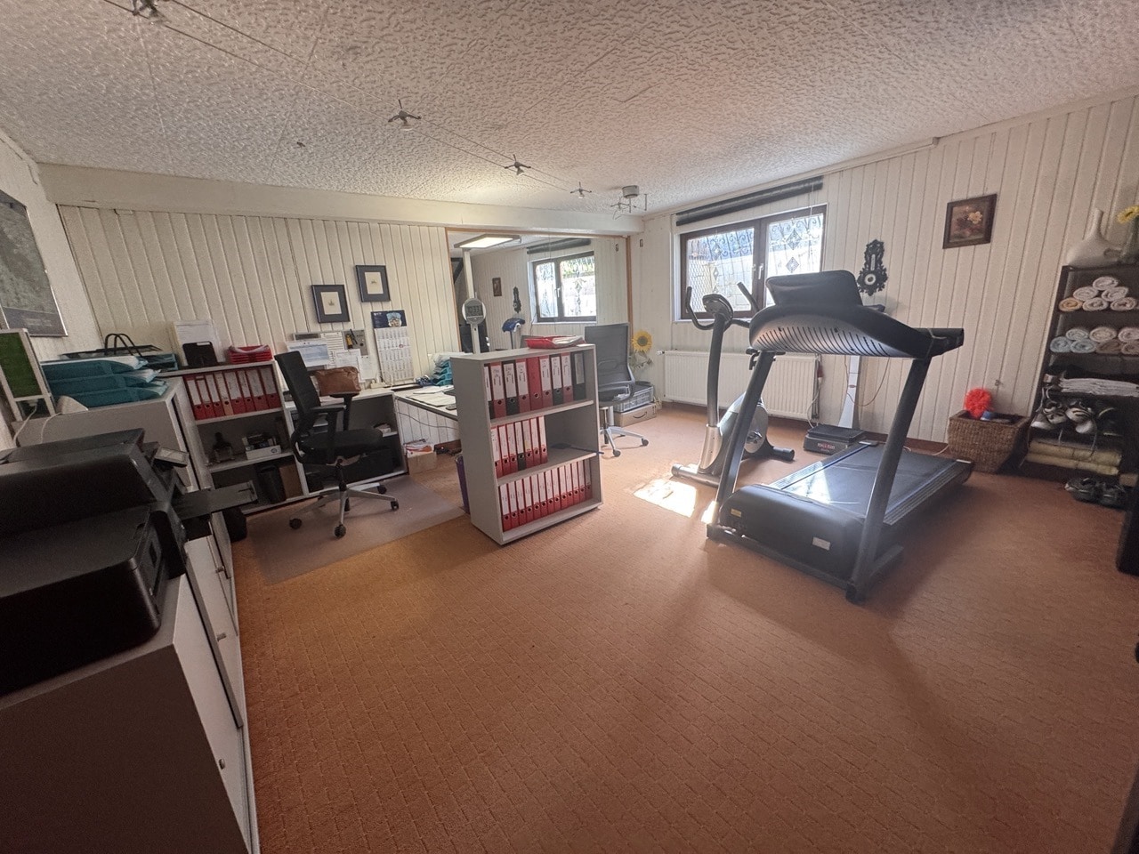 Das Haus ist voll unterkellert und bietet somit zusätzlichen Wohnraum (ausreichende Deckenhöhe und Heizungkörper) sowie Stauraum oder die Möglichkeit, weitere Räume zu schaffen. Der Bungalow besteht aus einem Geschoß und verfügt über acht Zimmer, darunter zwei Schlafzimmer, zwei Badezimmer, einschließlich eines Gäste-WCs und eines Tageslichtbads mit Badewanne und Dusche. Der Keller bietet weiteren Stauraum oder die Möglichkeit, einen Hobbyraum zu schaffen.