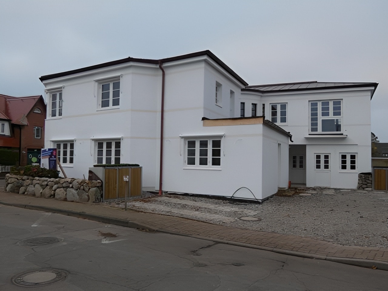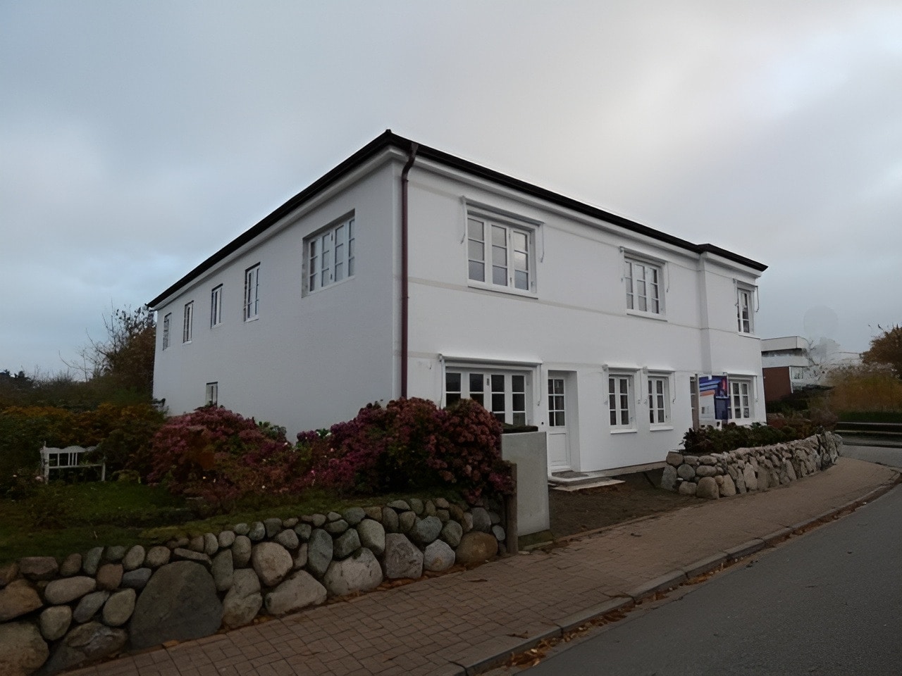 Das ästhetische Design der Immobilie wird durch einen Friesenwall zur Straßenseite sowie